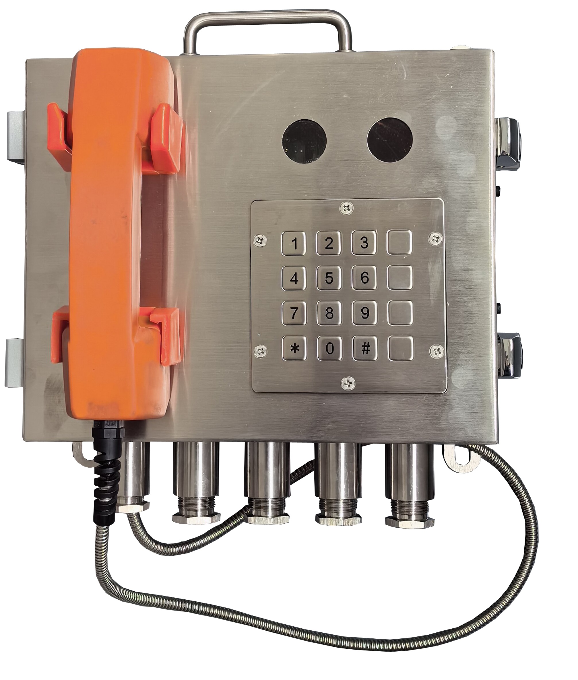 外殼采用全不銹鋼材質制造,防護等級IP66,防水、防塵、防腐蝕,可與其它話站或調度雙工通話。